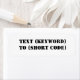 "TEXT (KEYWORD) TO (KURZER CODE)" Ändern Sie KEYWORD und KURZ CODE in Ihr eigenes Textnachrichtenwort und kurzen Code. Fügen Sie einen anderen Slogan oder Text hinzu.