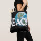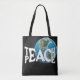 Weißer Text "Teach Peace" auf schwarzem Hintergrund Planet Erde. Die Hintergrundfarbe kann geändert werden.