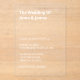 Ce texte blanc Invitation acrylique Mariage moderne est facile à personnaliser en utilisant le modèle de personnalisation en ligne avant de commander.
