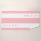 Élégant texte vertical sur le kit de serviettes à rayures blanches et roses de corail clair. Le texte peut être personnalisé.