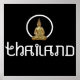 Thailand Gold Statue mit stilisierten Schriftart und goldener Buddha-Statue