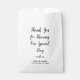 Express your heartfelt gratitude with our elegant wedding favor bags, perfect for saying "Thank You for Sharing Our Special Day". These customizable paper bags are ideal for holding small treats, cookies, tea bags, or mini coffee mugs — a thoughtful keepsake your guests will cherish. Choose from premium paper options and personalize with your names, wedding date, or a romantic design to match your theme. Whether you're hosting a rustic barn wedding, a beachside ceremony, or a modern city celebration, these favor bags add a polished, personal touch that elevates your décor and shows your appreciation. Durable, stylish, and ready to ship, they’re the perfect way to say thanks in a meaningful way.