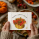 Mit dieser inspirierenden Postkarte mit einem Blumenkonus und einem Kiefernkegel in einem Kürbiskorb erfassen Sie das Wesen des Erntedanks. Erinnern Sie diejenigen in Ihrer Nähe daran, wie wichtig es ist, dankbar, dankbar zu sein und ihre Segnungen zu zählen.