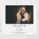 Newlyweds thank you card with a whimsical typography and a romantic wedding couple photo on vintage effect.