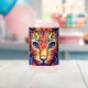 A striking, multi-colored geometric illustration of a leopard’s face, blending vibrant reds, blues, yellows, and purples in a bold mosaic style. The faceted shapes and vivid contrasts create a powerful, modern, and expressive animal portrait that grabs attention and adds an energetic artistic flair to any space. Perfect for lovers of wildlife art, contemporary design, and eye-catching statement pieces.