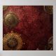 A richly detailed scene of golden instruments, mystical diagrams, and arcane symbols — set against a deep crimson backdrop.