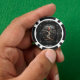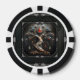 The Art Deco Tree of Life design. A stylized tree of life in silver metal with intricate details. The twisted trunk is textured and rests on a geometric base. The branches are decorated with red and green jewels, while the leaves shimmer in a bluish-green hue. The dark gray background highlights the design, which is framed by an elegant Art Deco border with geometric patterns.
