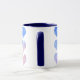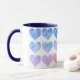 This is a pretty cute mug. The blue hearts go pretty well with colors of the mug, since the colors of the mug are navy blue & white. They pretty much fall in alignment.