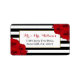 Die schicke, moderne Luxus-Hochzeitskollektion besticht durch einen klassischen schwarz-weißen Streifen-Hintergrund, der durch hübsche rubinfarbene rote Rosen und ein vergoldetes Imitat-Folienrahmen betont wird. Diese Labels sind leicht zu personalisieren und sind das perfekte Zubehör für jede Hochzeit, jedes Brautparty, jede Geburtstagsfeier, jede Verlobung oder jeden anderen besondere Anlass.