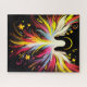 A puzzle of an abstract Angel on a black background.