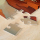 This modern art jigsaw puzzle features an abstract rugged desert landscape in deep burnt red, orange, brown, teal, cream, and black. At the center rises a bold rocky butte reminiscent of the American Southwest, set against a dramatic sky and reflected in stylized water below. The artwork blends contemporary minimalism with rich, expressive color, creating a visually engaging scene that’s both artistic and adventurous. With its modern aesthetic and vibrant palette, this puzzle offers a satisfying challenge for both kids and adults. It’s a great choice for family game night, a relaxing solo project, or a unique gift for anyone who loves desert scenery, abstract art, or colorful nature‑themed designs.
