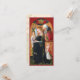 In this early 15th-century arched panel painting by an anonymous French artist, the birth of the infant Jesus is imminent. Beneath a golden crown being lowered from heaven on high and supported by two bright red angels, another, a larger, smiling angel with multi-colored, upright wings and dressed in white, gently leads a gravid—that is, very pregnant—Virgin Mary to the place where she will deliver her babe, fulfilling the first part of God’s plan for the salvation of mankind. Mary, dressed in a dark blue robe and matching mantle, her head humbly bowed, meekly follows the angel’s lead. She is serenely calm and introspective. In the hand not held by the angel, she carries a medieval bag book, probably a book of Scripture. Two much smaller female figures wearing aprons follow after the BVM. They are neither angels nor children. They are "Emea" (the midwife") and Salome who attended Mary in the Nativity story as recounted in the apocryphal Gospel of James. Their small stature indicates their lesser importance in the scene. Behind an elaborately woven, waist-high tapestry hung as a privacy curtain, a fretful, elderly St. Joseph watches as his young wife is led away to give birth. + Image Credit (Front): The Expectant Madonna with Saint Joseph, by an anonymous 15th-century French painter, c. 1425/1450, tempera on a European walnut panel. Dimensions (image): 27 3/4 × 13 3/4 in. (70.5 × 35 cm.); (with integral frame [not pictured here]): 32 11/16 × 19 × 2 3/4 in. (83 × 48.3 × 7 cm.). The Samuel H. Kress Collection, The National Gallery of Art, Washington DC, Accession Number: 1952.5.32. This image is in the public domain. + Image Credit (Back): Adaptation of berries from OpenClipart-Vectors via Pixabay.