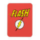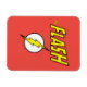Schauen Sie sich dieses ikonische Logo für The Flash an, das seinen Namen im Stil der teleskopischen Geschwindigkeit über dem leuchtend gelben Blitzsymbol in einem Kreis zeigt!