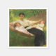 Dieses Design zeigt ein Gemälde des amerikanischen Impressionisten Joseph DeCamp (1858-1923). Es zeigt eine Frau und zwei Kinder, die sich im Sommer auf einer Hängematte entspannen. Die Frau ist die Ehefrau des Künstlers Edith, das junge Mädchen ist seine Tochter Sally und der Junge ist sein Sohn Ted. Die Frauen lächeln sanft auf den Betrachter, während das junge Mädchen gelangweilt aussieht und der Junge schläft. Die Hängematte liegt in einem üppigen Garten mit grünen Bäumen und Gras. Das Originalwerk wurde 1895 von Joseph DeCamp gemalt.