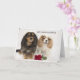 Wir stellen Ihnen unsere bezaubernden Cavalier King Charles Spaniels vor, die in Hochzeitskleidung verkleidet sind! Diese süßen Begleiter sind hier, um Ihre Grußkarte besonders zu machen. Mit ihrem charmanten Lächeln und den griechischen Hochzeitskronen sind sie bereit, Ihre fröhliche Gewerkschaft zu feiern. Glücklicher Hochzeitstag!