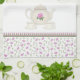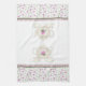 Illustration d'une vieille théière avec un décalque rose sauvage et des boutons de rose entourant le couvercle. Les tasses de thé assorties sont également décorées de l'équilibre de bouton de rose. Une rangée de l'équilibre de bouton de rose encadre les images dessus et bas de théière. Les extrémités de la serviette sont décorées d'une conception de papier peint floral avec une frontière verte et rose. La tasse, le plat, et la théière assortis de porcelaine tendre sont également disponibles. Cliquez sur dessus Personalize si vous souhaitez ajouter le texte sur la serviette. Choisissez un style de police, une taille, et une couleur.