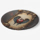 The pulsating heart of mechanics, a glowing steampunk heart. The frame features the characteristic steampunk style, characterized by a fascinating blend of Victorian elegance and industrial flair. Complex mechanical details such as intricate gears, screws, and bolts adorn the edge, lending depth and texture to the design. The heart is mechanically designed, with visible springs, small gears, and metallic embellishments that symbolize its vitality in a technical context. Flanking the heart are dark wings.
