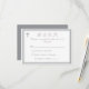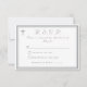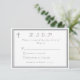 Design front features a pure white background to elegant, silver-colored text displayed in the proper format for a traditional Catholic response card. The image of a cross is displayed at top left corner. Entire design is framed by a fine, elegant silver-colored border which adds a classy appearance to the design.