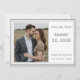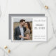 Design front features the photo you supply displayed at left and framed by an elegant, thin, silver-colored border. Heading, date, names and city, state of wedding are featured in the color of an elegant silver. Entire design is framed by an elegant silver and white border and is featured against a white background.