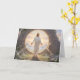 An awesome, serene and inspiring AI generated image of the risen Jesus stepping forward from a circular stone tomb at dawn showing that the stone entrance was moved. Warm golden light radiates behind Him, forming a glowing halo effect through the archway. His hands are open in a gesture of peace and welcome, while white doves soar in the soft pastel sky. Spring flowers bloom at His feet, and gentle rays of sunlight symbolize resurrection, hope, and new beginnings—perfect for a personalized Easter greeting card.