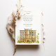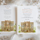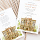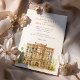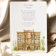 Mit dieser wunderschönen Aquarellhochzeit mit dem berühmten Rookery-Gebäude in Chicago laden Sie Ihre Gäste zu einem kulinarischen Fest in der Stadt ein. Das Kunstwerk besticht durch seine einzigartige rötlich-braune und terracotta romanische und Kommerzielle Architektur, die sich durch eine sanfte, raffinierte Aquarellenarchitektur auszeichnet. Die warmen Farbtöne des Gebäude in den Farben Rot-Braun, Ocker und Beige werden durch graublaue Touchs in den Fensterfronten ergänzt. Es ist anmutig gerahmt mit stilisiertem Blattwerk: Auf beiden Seiten gibt es hellgrüne, abgerundete Blätter, länglich-gelblich-grüne Blätter, an der Unterseite weiche grüne Buchsen, die der architektonischen Grandeur eine Touch Bio Weichheit verleihen. Diese Einladung ist ideal für Paare, die eine klassische, architektonische und elegante Hochzeit in Chicago suchen. Die Vorderseite präsentiert elegant Ihre Hochzeitsdetails, während die Rückseite "The Finer Details" für Gästeinformationen anbietet.