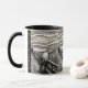 This coffee mug features Edvard Munch’s iconic The Scream (1893–1895), a masterpiece of Expressionism celebrated for its intense emotion and swirling composition. This version is rendered in a refined black and cream palette, giving a minimalist interpretation of the classic work. Two text fields on each side of the handle display the artist’s name and artwork title, which can be customized with your own name or message for a personal touch.