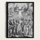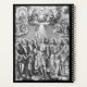 In dieser Gravur des Himmels von Hieronymus [Jerome] Wierx aus c. 1600 liegt der Schwerpunkt auf den Archangels. + An der Bildspitze befindet sich die Heilige Dreifaltigkeit mit Symbolen der Evangelisten (Mitte); die gesegnete Jungfrau Mary mit SS. Peter und Paul (links); und, S. John der Taufe, Stephen der ProtoMartyr und Lawrence von Rom (rechts). Die Größe dieser Zahlen ist kein Hinweis auf die theologische Bedeutung. Vielmehr ist ihre reduzierte Größe eine Funktion der Komposition im Blickwinkel, die eine große Distanz zwischen den figuralen Gruppen im Flugzeug des Bildes anzeigt und die Archangels als Brennpunkt des Kunstwerks betont. + Die Sieben Archangele, ihre Namen in ihren Halos eingetragen, werden mit ihren Attributen dargestellt. Die Archangels lesen von verlassen nach rechts wie folgt: Der Heilige Raphael ("Gottesheilung") trägt ein apothecarisches Glas und hält die Hand der jungen Tobias, die einen Fisch trägt. Mit einer Salbe aus Fischen heilte St. Raphael Tobias’ Blindenvater und seine zukünftige Ehefrau vom Besitz eines Dämons. Uriel (oder Ariel; "Gott ist mein Licht") hat ein Schwert. Er könnte Adam und Eva nach dem Herbst aus dem Garten Eden ausgewiesen haben. Eine Flamme brennt ihm zu Füßen. Der heilige Gabriel ("Stärke Gottes") wird gewöhnlich mit einem Lilienspray dargestellt. Hier trägt er jedoch eine Laterne, die ein Licht von einem Jasper-Spiegel abstrahlt. Die Laterne symbolisiert das Wort Gottes; und der Spiegel des Jaspis - ein Mineral mit Ausschlüssen, das bei poliertem Glanz gleichwohl annimmt - symbolisiert unser mangelhaftes Verständnis der Natur Gottes. In der Mitte trägt ein großer, mit Rüstungen verkleideter St. Michael ("Wer ist wie Gott?") einen Schlachtstandard und eine Siegespalme. Er drückt Luzifer in Gestalt eines Drachen unter Füßen. Sealtiel ("Gebet für Gott"), hier mit den Augen erhöht, faltet seine Hände im Gebet vor seiner Brust. Jehudiel ("Gottes Gerechtigkeit") trägt eine Krone und eine Geißel (das himmlische Äquivalent von Karotte und Peitsche). Und schließlich hält Barachiel ("Gottes Segnungen") eine Falte seines Mantels, gefüllt mit Blume, zum Strecken oder Ausgeben. + Die Gravur wurde durch zwei biblische Passagen inspiriert: Apoc. 1:4 und Psalm 137:1-2—die im Lateinischen unter dem Bild im Originaldruck erscheinen (hier nicht sichtbar). + Gemeinsames Fest der SS. Michael, Gabriel und Raphael: 29. September + Image Credit (M 034): antike flämische Gravur von St. Michael und Archangels (The Seven Archangels), von Hieronymus [Jerome] Wierx, ursprünglich mit Vorrecht von Piermans, Antwerpen, Belgien, veröffentlicht, c. 1600, vom Metropolitan Museum of Art, The Elisha Whittelsey Collection, The Elisha Whittelsey Fund, 1951, 51.501.6402. Creative Commons CC0 1.0 Universell Public Domain Dedication.