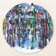 The Ski Party - Skis and Poles Runder Pappuntersetzer