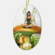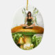 A sweet fairy, clad in leaf green, sits on contemplation atop a magical toadstool in this fantasy digital artwork by Jayne Wilson.