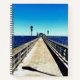 A striking photograph capturing the dramatic perspective of the fishing pier at Springs Park in Green Cove Springs, Florida. The strong, leading lines of the railings and concrete deck draw the eye straight toward the distant gazebo on the St. Johns River. The composition is dominated by the contrasting shades of blue, the brilliant sky meets the deep, intense river water, while the elegant light posts and long shadows add depth and character. This image is a beautiful piece of Florida scenery, perfect for anyone who loves dramatic waterfront architecture and bold color.