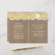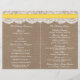 Die Hochzeitskollektion mit gelbem Sand ist ein atemberaubendes Design mit einem hübschen rustikalen Burlap-Effekt-Hintergrund und einem romantischen Vintagen Spitzeneffekt, der mit einem atemberaubenden Sand-Dollar und einem gelben Band vollendet wird. Diese Programme können für Ihren besondere Anlass personalisiert sein und würden die perfekte Vorlage für Hochzeiten, Brautpartys, Verlobungsfeiern, Geburtstagsfeiern und vieles mehr machen. *Bitte beachten Sie, dass Zazzle nur gedruckte Produkte verkauft, sodass dieses Produkt keine echten Bruch-, Spitzen-, Sand- oder Bandmaterialien enthält.