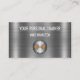 Die coole Personal Trainer Business Visitenkarten Design Vorlage mit einem goldfarbenen Ausstattungsemblem, das Sie auf unseren Karten verwenden können, und brushed silberfarbene Hintergrund-Kunst, die das Design cooler macht. Für Fitness Trainer, Personal Trainer, Fitnessraum oder Club gedacht"