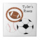 Ein cooles Design mit einem braunen Lederfußball in einem braunen Kreis, einem Baseball mit roter Naht und einem schwarz-weißen Fußball. Passen Sie den Namen nach Wunsch an.