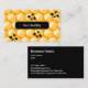 Cartes de visite à thème miel d'abeille avec un motif graphique en nid d'abeille dans l'arrière - plan et abeilles en face avec vos coordonnées sur le dos. Travaille comme carte de visite pour un apiculteur, des services de lutte antiparasitaire contre l'abeille ou des produits liés au miel.