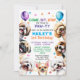 Invitation de chien Invitations de fête d'anniversaire. 3 ans (vous pouvez changer d'âge). Pour garçon ou fille. Jolie invitation à l'illustration de chiot souriante et joyeuse conçue avec des confettis et des ballons entourés de races de chiens populaires comme, shih tzu, carlin, maltese, chihuahua, poodle et beagle. Tout texte modifiable avec le nom de l'enfant, l'âge, l'heure de la fête, l'adresse et le RSVP. Vous pouvez changer l'image arrière en photo de votre enfant.