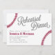 Répétition Dîner d'invitation design avec couture de baseball pour votre mariage à thème de baseball! Customisez avec vos couleurs d'équipe préférées.