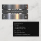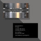Cartes de visite classiques pour un service de construction conçu avec du ton argenté cool numériquement imprimé art arrière - plan avec des fixations réalistes qui imitent l'aspect d'un morceau de métal fixé. Créé pour un entrepreneur, un constructeur, des services de recyclage ou un soudeur. Présenté sur stock de carte lustré.
