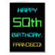 Ce design simple et amusant de carte de voeux d'anniversaire comporte un message comme "HAPPY 50th BIRTHDAY, FRANCISCO!". Il présente également une apparence amusante inspirée de l'informatique numérique. Le nom à l'avant et le message à l'intérieur peuvent être personnalisés. Il pourrait être envoyé ou donné à quelqu'un qui célèbre son cinquantième anniversaire, et qui travaille peut-être comme programmeur informatique, développeur logiciel, administrateur de base de données, administrateur réseau, ingénieur électronique, ou qui aime utiliser des ordinateurs. [~Z0000100]