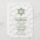 Invitation au Bar Mitzvah sur le thème du golf avec un arrière - plan de golf et des accents d'herbe verte. Cette invitation au golf Bar Mitzvah est élégante et moderne. Cette invitation à la Bar Mitzvah, sur le thème du golf, est composée d'un arrière - plan de golf subtil et émaillé avec l'étoile juive de David et l'icône du golf. Les couleurs de cet élégant design de Bar Mitzvah sur le thème du golf sont blanches et vertes. Le nom de votre fils est en caractères gras. Si vous envisagez d'accueillir un Bar Mitzvah sur le thème du golf sportif, cette élégante invitation au golf Bar Mitzvah est peut-être le choix idéal.