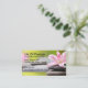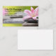 Cartes de visite éditables pour massothérapeute tendance, conçus avec une image arrière - plan relaxante avec une fleur de lys et des pierres et design de texte décontracté mais professionnel, vous pouvez customiser en ligne. Faites un oeil agréable carte d'appel que vous pouvez distribuer aux clients comme carte de visite ou écrire leur prochain rendez-vous au dos.