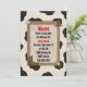 Invitation à la fête d'anniversaire du thème occidental du garçon faite dans un vieux look de papier parchemin, avec un cadre de motif en peau de vache. Des graphiques d'icônes de thème occidental décorent le cadre. Le texte noir et rouge est entièrement personnalisable pour répondre aux besoins de votre partie. Grande invitation pour n'importe quel garçon d'âge.