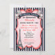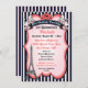 Ooh la la, mignonne et jolie invitation à la fête d'anniversaire avec une touche parisienne. Avec ses deux joyeux canicules français et sa tour Eiffel, il est entouré d'un bel arrière - plan rose parachute et de rayures rose pâle et noir. Illustration tirée à la main par McBooboo.
