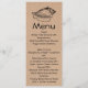 Le design artisanal est le thème de la plage menu de réception de mariage, avec des graphiques d'un arrière - plan en papier artisanal marron et une illustration d'une coquille de conque noir, en haut. Personnalisez tout le texte pour votre journée spéciale. Des produits correspondants sont disponibles.