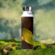 Thermalflasche mit Herbstbild von Blätter und dunklem, goldfarbenem Hintergrund, ideal für einen Flasche im Tarnmuster