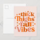 Dieses lebhafte und spielerische Falldesign besticht durch die lustige und selbstbewusste Phrase "Thick Thighs Fall Vibes" in einem kühlen, Retro-inspirierten Schriftart. Der Text ist in einem dynamischen, gestapelten Layout angeordnet, wobei jedes Wort in warmen Herbsttönen mit Orange-, Pfirsich- und Weichrosa-Farbtönen gefüllt ist. Die sternähnlichen Glitzern in der Umgebung sorgen für eine Touch von Lustigkeit und Glanz, die das festliche und gemütliche Ambiente des Designs unterstreicht. Die Typografie ist gewagt und kurvig, was ihr eine lebendige, Vintage Anziehungskraft verleiht, die das Wesen des Herbstes perfekt einfängt.