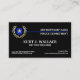 Berufliche, klassische und maßgeschneiderte Visitenkarten von Polizeibeamten mit schwarz-weißer Polizeiflagge auf der Rückseite, ein klassischer Abzeichen/Lorbeerkranz und eine dünne blaue Linie auf der Vorderseite.