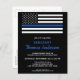 Einladungen für die Polizeieinziehung in Thin Blue Line . Feiern Sie Jahre des engagierten Dienstes und laden Sie Freunde und Familie zu Ihrem Party der Strafverfolgung ein, mit dieser Einladung zur Einberufung der Polizei für die "Thin Blue Line"-Flagge. USA amerikanische Flagge Design in Police Flag Farben, moderne trendige Schwarz-weiß und blau Design. Diese Einladung des Polizeibeamten zur Pensionierung ist auch perfekt für die Einladungen der Polizeiakademie, den Umzugsplatz für Personalisierung. Diese Einladungen müssen als überdimensionale Postkarten verschickt werden, sodass es zu normalen Portogebühren kommen kann, sie aber keinen Umschlag oder eine Rücksendeadresse benötigen. Sehen Sie sich unsere Kollektion an, um die Geschenke der Polizei für den Ruhestand, die Gastgeschenke für den Polizeidienst und die Vorräte zu finden. COPYRIGHT © 2021 Judy Burrows, Black Dog Art - Alle Rechte vorbehalten. Thin Blue Line, Referent für Haushalt