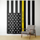 Dieser Wandteppich, der als Foto-Hintergrund für besondere Anlässe verwendet werden kann, enthält eine schwarz-weiße Dispatcher dünne gelbe Linie American Flag zusammen mit einem Offizier-Namen für Sie personalisieren.