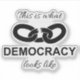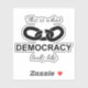 Vinyl sticker featuring a design with a broken chain link and text saying "This is what democracy looks like". The design allows you to change the color of its components as well as resize it or change the color of the background.