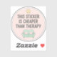Add a little humor to your self-care routine with “This Sticker Is Cheaper Than Therapy.” Featuring a playful handwritten-style font and a simple smiley face or tiny couch icon, this design feels personal, cheeky, and instantly relatable. Soft pastel tones like light pink and mint green balance bold dark text, creating a lighthearted look that’s perfect for gifts, and everyday reminders to laugh things off. A great pick for friends, therapists, or anyone who copes best with humor.